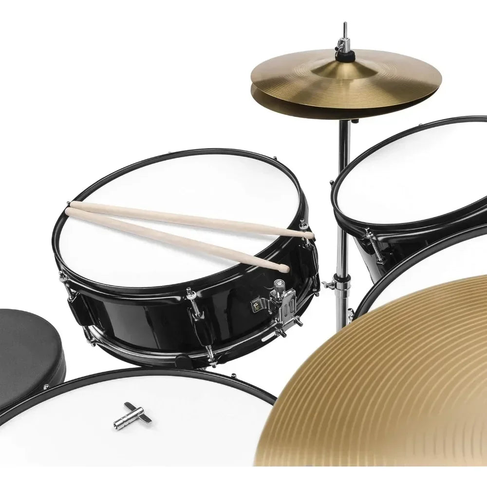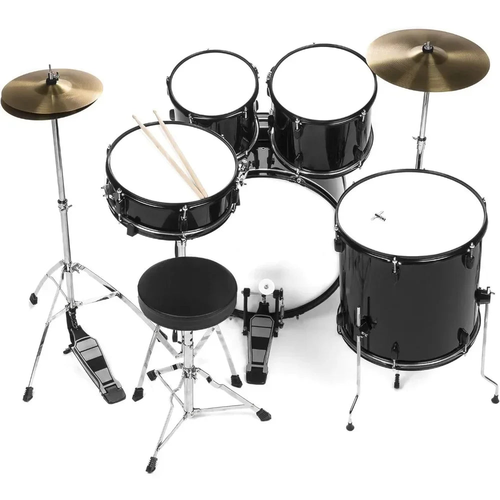 5-Piece Full Size Complete Adult Drum Set w/Cymbal Stands, Stool, Drum Pedal, Sticks, Floor Tom (Black)