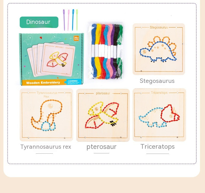 Color: Style 4 pieces of embroidery Threading Animals, style 4 pieces of embroidery threading dinosaurs, style 4 pieces of embroidery threading traffic, style 4 pieces of embroidery threading insects