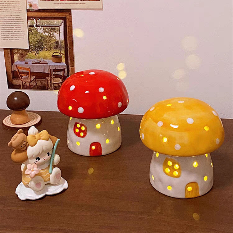 Handmade Cute Ceramic Mushroom Small Night Lamp Ornaments