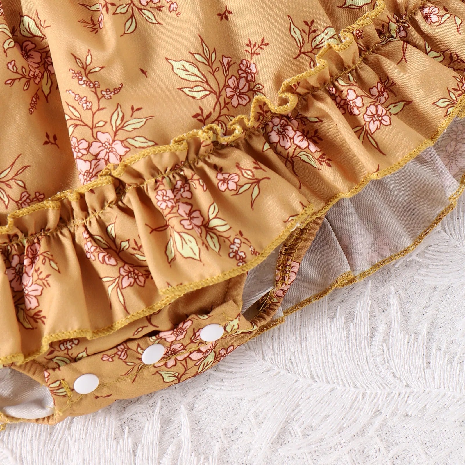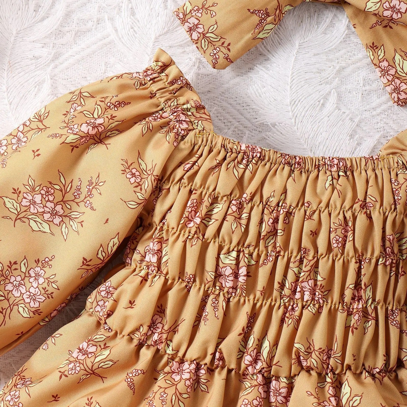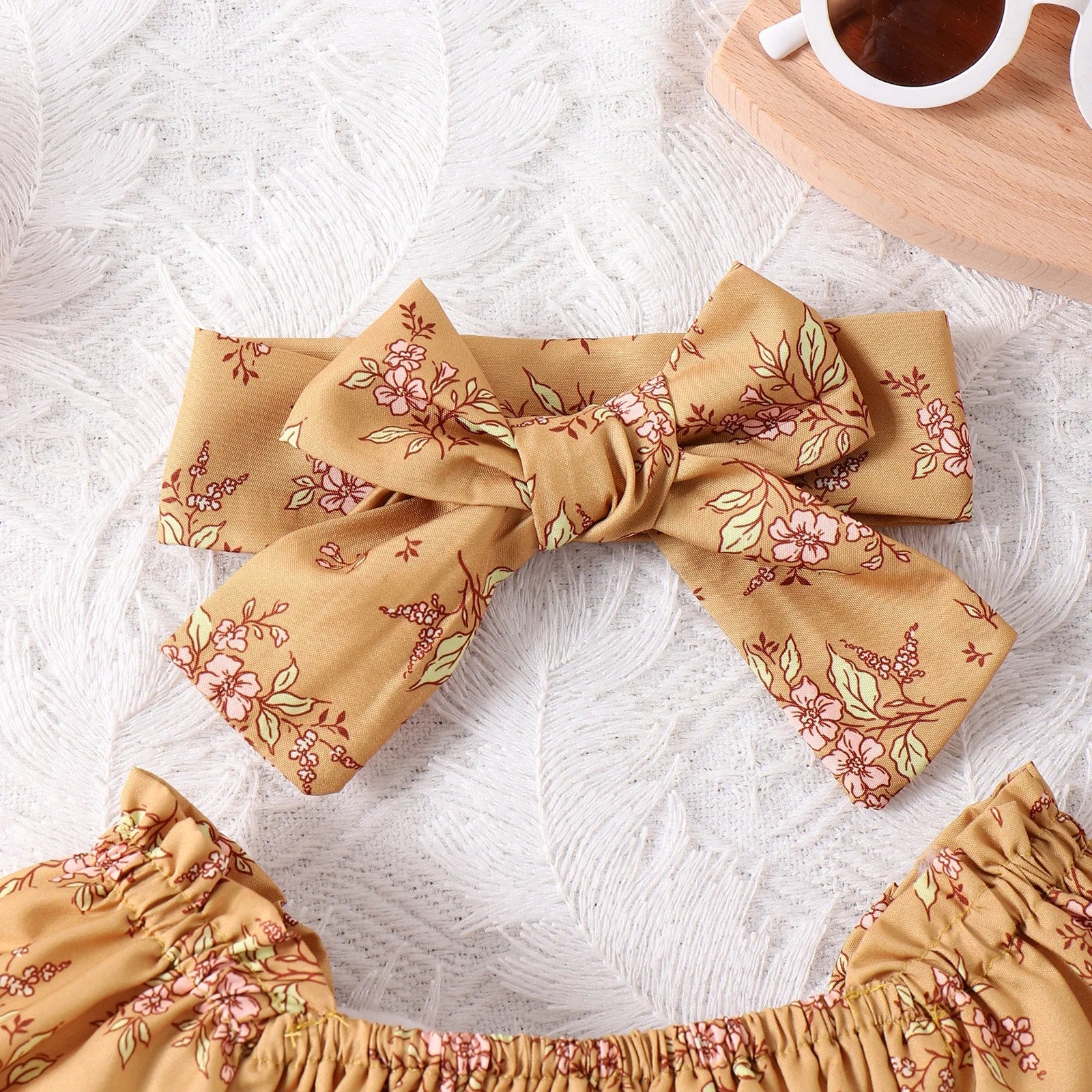 Infant Toddler Yellow Floral Skirt Romper Headscarf Two-piece Set