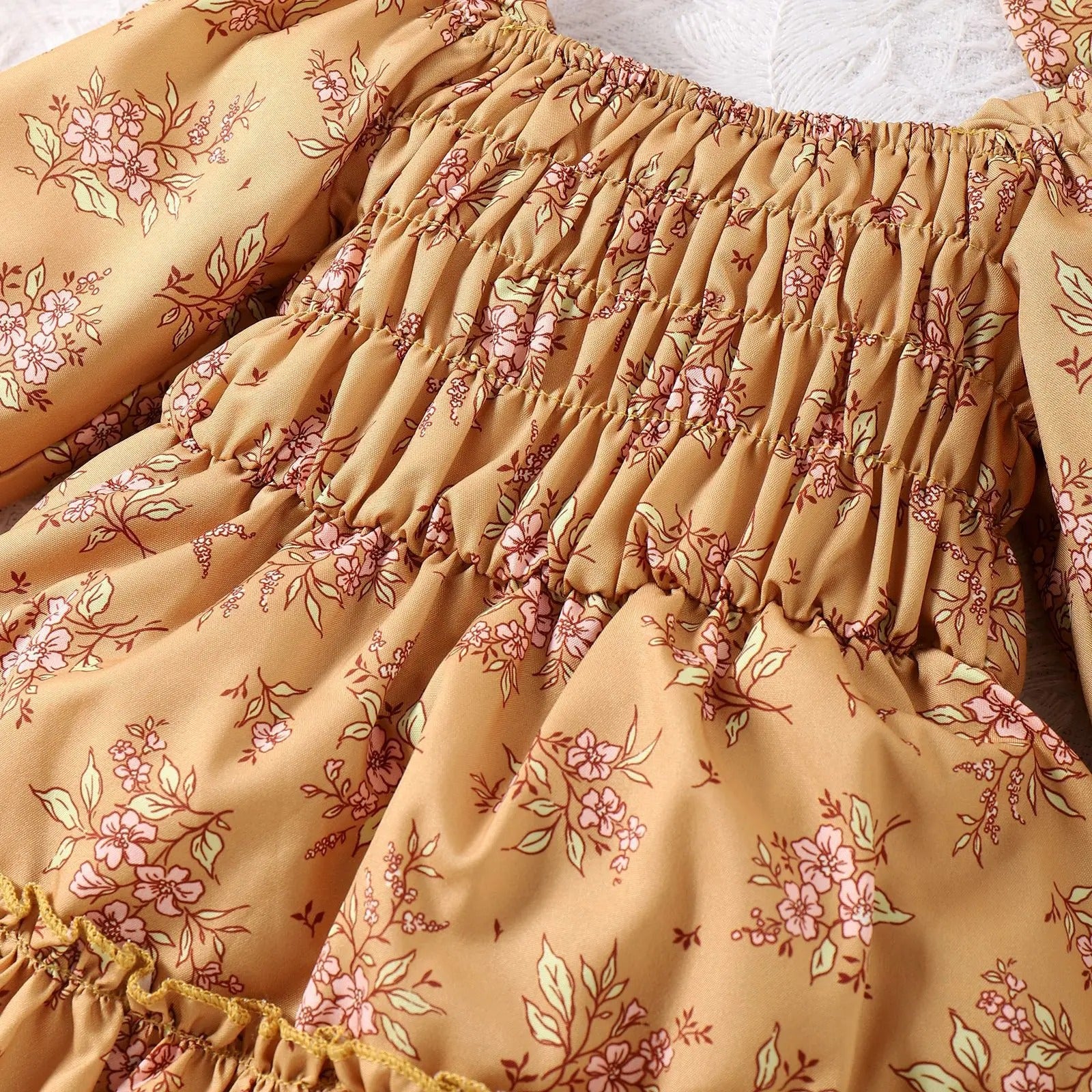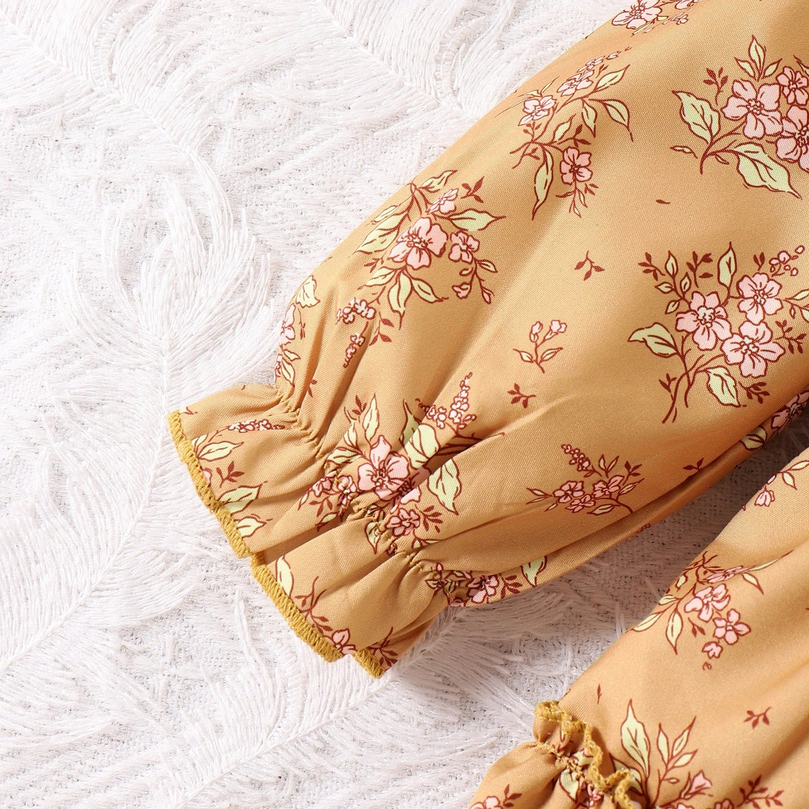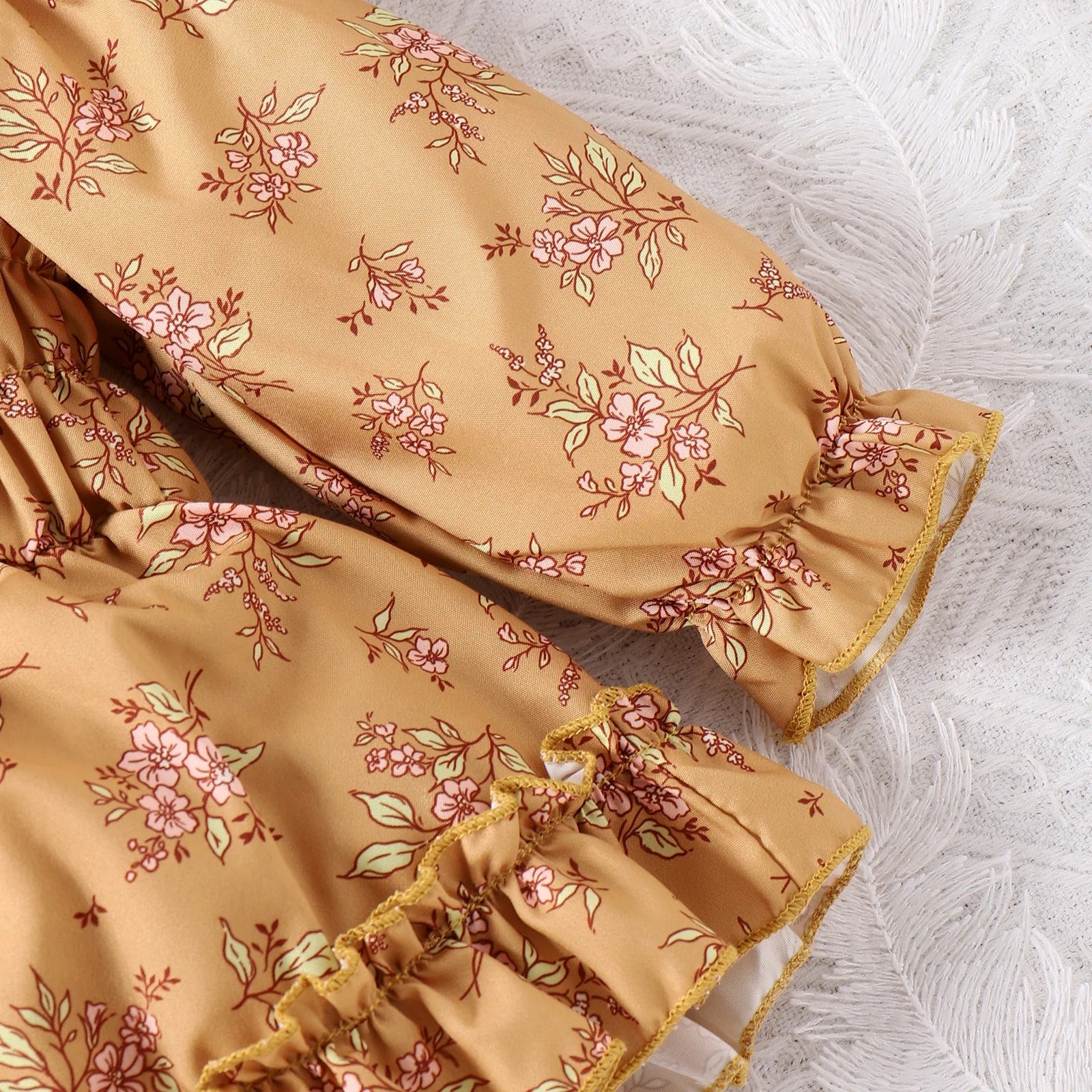 Infant Toddler Yellow Floral Skirt Romper Headscarf Two-piece Set