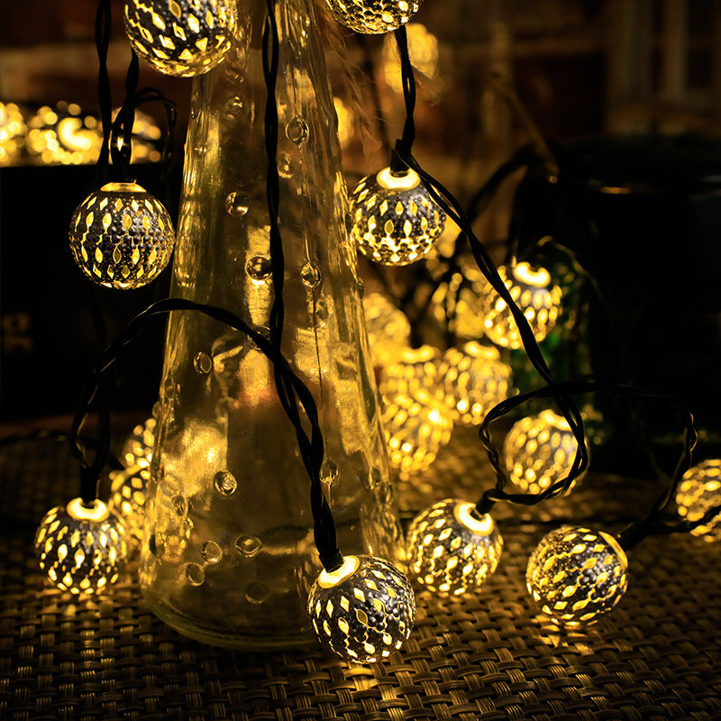 LED Solar Iron Hollow Morocco Ball Lighting Chain