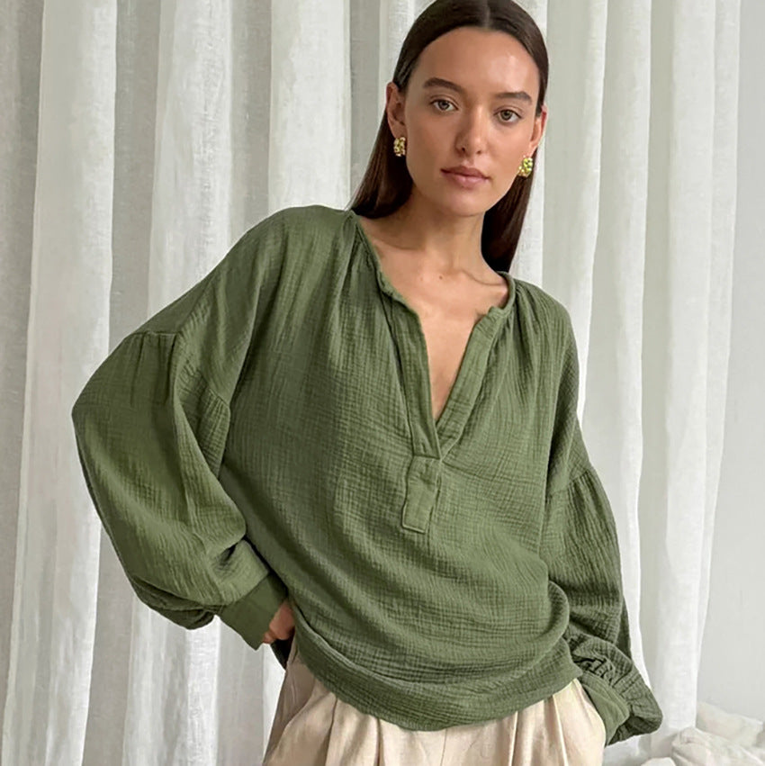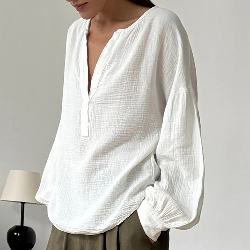 Simple Pure Cotton Lantern Sleeve Blouse